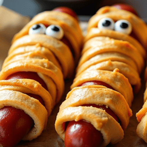 - Mini Mummies: Use cocktail sausages and smaller dough strips; cook 8–10 minute